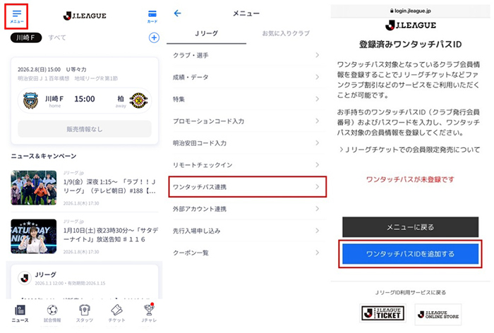 ※Jリーグ公式アプリ「Club J.LEAGUE」内より確認する方法