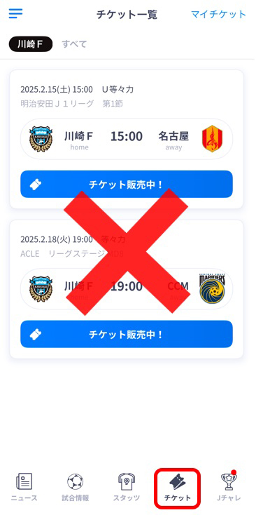 Jリーグチケット(チケフロ)内のチケット一覧からQR発券することはできませんので、ご注意ください。
