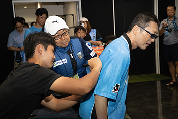| 注意事項 | ◇当日の観戦チケットは各自でご用意ください。「ウイニングハイタッチのみ参加」は不可となります。 ◇雨天決行です。傘の使用はお断りしておりますので、レインコートなどを着用してご参加ください。 ◇イベント中の静止画および動画の撮影は一切禁止となります。 ◇試合中に集合していただきますので、試合を観戦できない時間帯がある場合がございます。 ◇川崎フロンターレ公式サイト・クラブ公式発行物等で、参加者の方の写真を掲載する場合がございます。 |