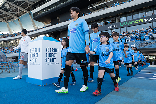 選手入場時にフロンターレの選手と手をつないでいただきます。