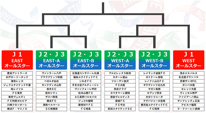 ・明治安田Jリーグ百年構想リーグの6つの地域グループごとに構成されたオールスターチームによる1DAYトーナメント方式を実施(全7試合)