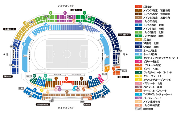 ※各入場ゲートに設けられた「再入場ゲート」より、一時退場および再入場が可能となります。ただし、一時退場についてはキックオフ30分前までとなりますので、ご注意ください。