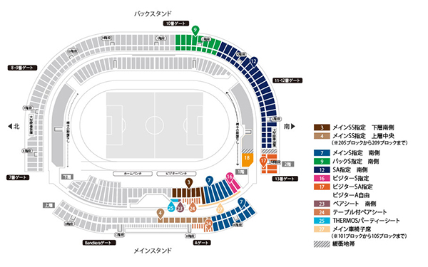 ※上記エリア以外でのビジターグッズを身につけてのご観戦・ビジタークラブを応援される行為は禁止となります。