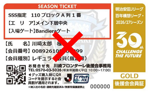 ※下記の「ファンクラブ〈後援会〉会員証(ICカード)」や「デジタル会員証」では入場できませんので、ご注意ください。