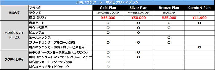 | アクティビティ | ・選手OBトークショー&交流会(ラウンジ) ・川崎フロンターレマスコット グリーティング ・試合前ウォーミングアップ見学 ・試合後ピッチサイドウォーク |