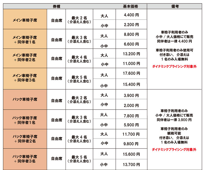 ※スペースの関係上、同伴者(介添え人除く)の方は原則3名様までとなります。それ以上の場合は、事前にticket@frontale.co.jpまでご相談ください