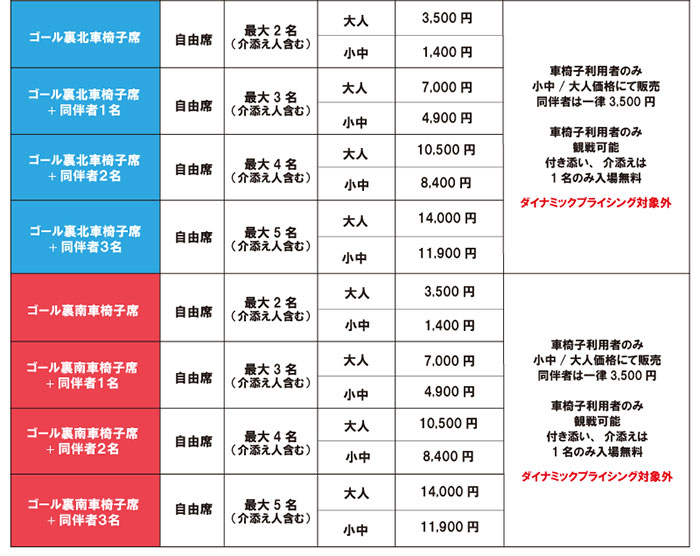 ※車椅子席の販売方法がUvanceとどろきスタジアム by Fujitsuとは異なりますのでご注意ください。