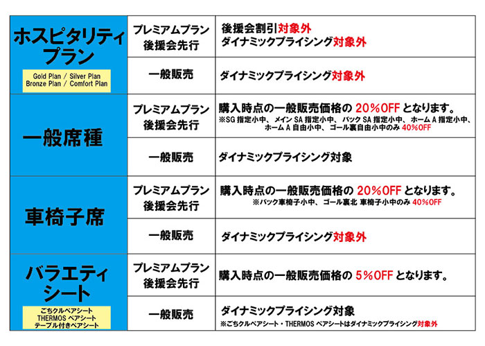 ※ホスピタリティエリア:【価格表】券種No.1~4、バラエティシート:【価格表】券種No.28~30は対象外となります。