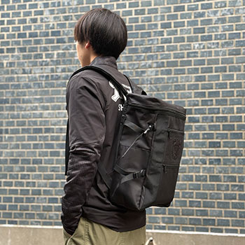 スクエア型のバックパックはスッキリでシンプルとしているのでどんなシーンでも合わせやすい仕様です。