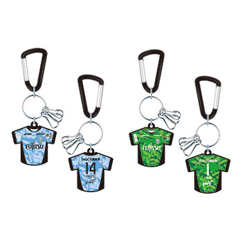 ユニフォームラバー付きのカラビナ。いつも使うバッグにつけて、推しの選手キーホルダーと一緒に出掛けましょう!!