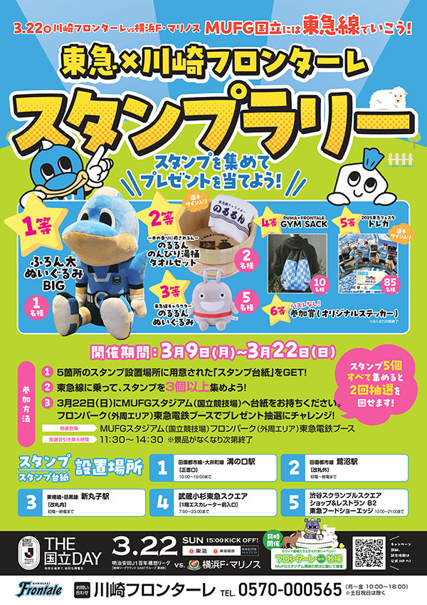 フロサポにもおなじみの「東急線キャラクター のるるん」が国立に遊びに来てくれます