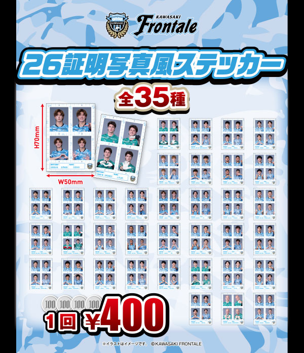 大人気商品である証明写真風ステッカーに2026年ver.が登場です! 選手が指さしをしたり、DAZNの選手紹介の際のポーズなど、お得感が増すグッズになっています。