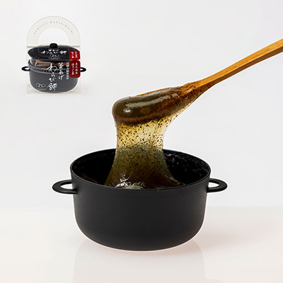 昔ながらの製法にこだわり、銅釜でじっくりと練り上げた独自の粘りと食感を持つわらび餅を販売しています。