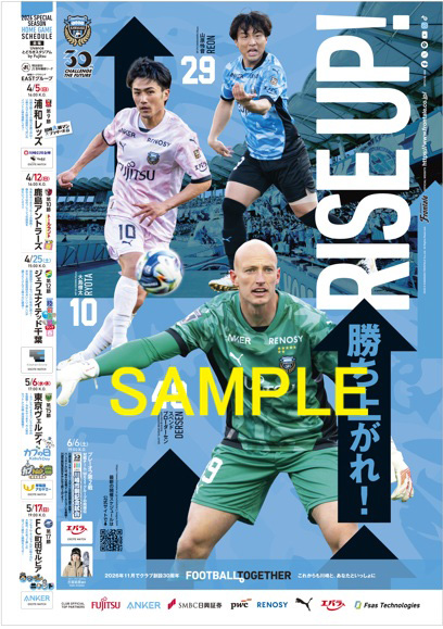 川崎市内の商店街やサポートショップの皆さんに掲示していただいている、ホームゲームの予定を伝える「スケジュールポスター」。