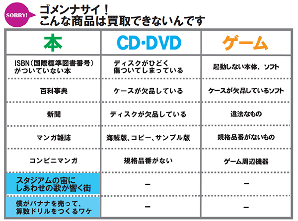 ご家庭や職場で不要になった書籍、DVD、ゲームを集め、そこで集まった古本などをバリューブックスに買い取ってもらい、その買取金額を川崎フロンターレに寄付いただきます。