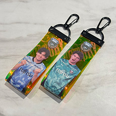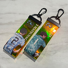 見る角度によって異なるカラーに輝くオーロラキーホルダーは、バッグなどのアクセントグッズにオススメです!! 勝利の喜びを表現している選手のガッツポーズグッズをGETしましょう!!