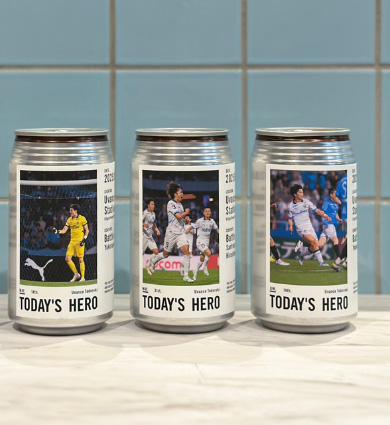 試合日や選手名など記載されたオリジナル缶は、喜びの勢いのままグイっと飲んでも良し、ご自宅で飾って最高の喜びを保管(缶)しても良し。缶に張り付けられた台紙は二重シールになっており、飲用後にシールとして利用できます。