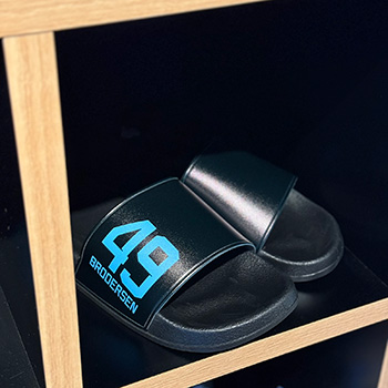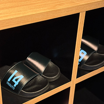 使いやすいブラックをベースに各選手ネーム・ナンバーを側面にデザインしたシャワーサンダルです。スポーツのクールダウン時やベランダで使用するなどにオススメです!