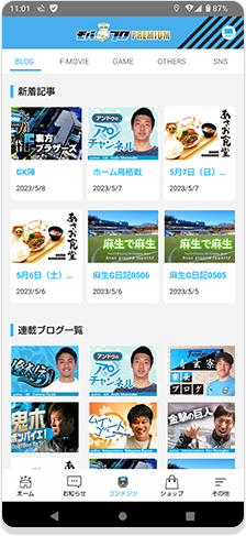 イベントレポートや練習後のコメント、オフショット画像、ミニ企画など、フロンターレに関する小ネタや画像が満載です。