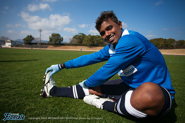 | フロンターレに加入が決まって最初に思ったこと | 日本に行きたいと思っていたのですごく嬉しかった。今年も契約延長をしていただいて感謝の気持ちでいっぱい | フロンターレで敵にしたくない選手は?その理由は? | ケンゴ。彼は視野の広さ、ゲームを決定づけるパスを持っている |