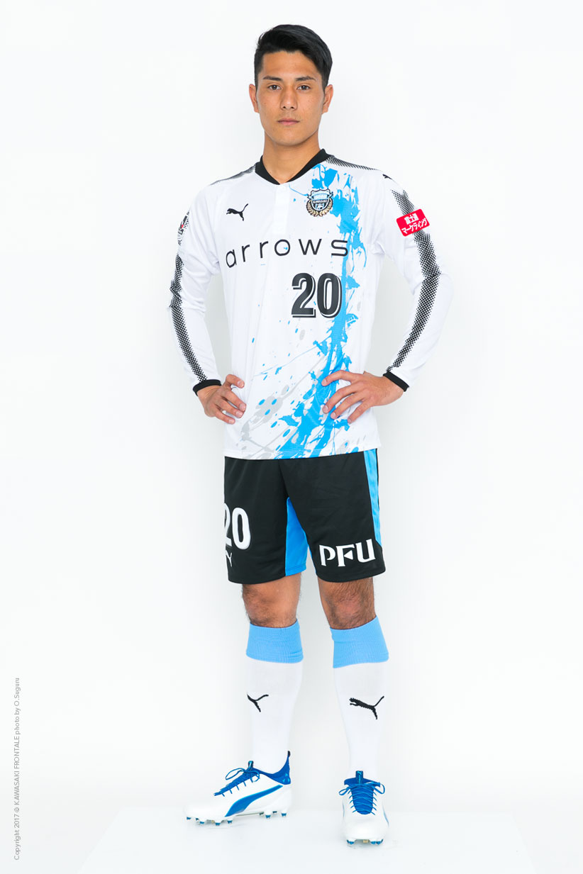 愛知学院大学から加わった沖縄育ちのFW。大学時代に頭角を現し複数クラブから高い評価を受け、フロンターレに加入。ペナルティエリアに入った際の動き出しの鋭さや空中戦の強さ、どんな体勢でもシュートに持っていく積極性とセンターフォワードとしての素材は一級品。その潜在能力を開花させるべく、日々のトレーニングからサッカーを突き詰めてもらいたい。