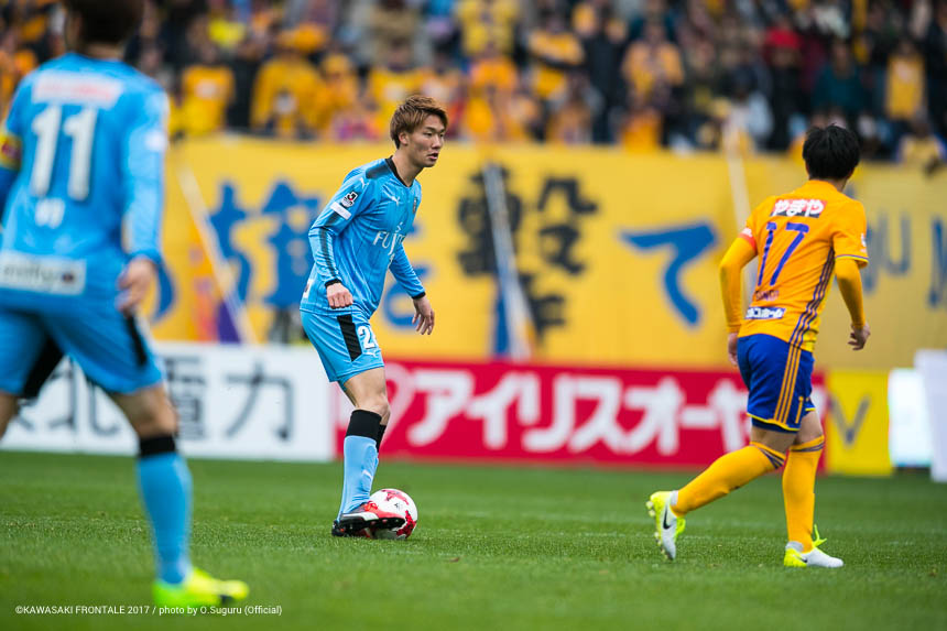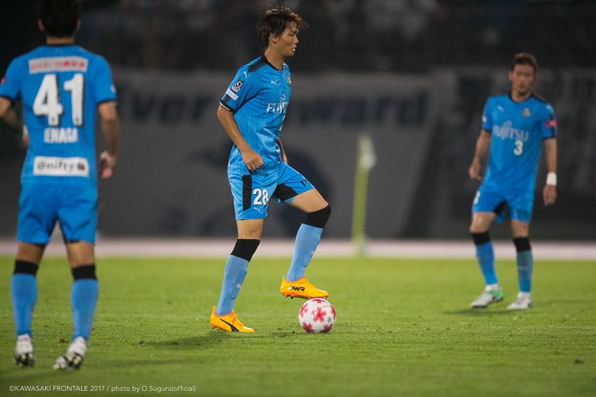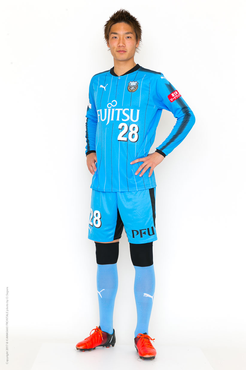 川崎フロンターレ・アカデミー出身。上背を生かした空中戦の強さと足下の技術で勝負する大型DF。ボランチに入った際には、厳しいチェックで中盤の守備を引き締める。昨シーズン、先輩たちとの地道なトレーニングを続ける中で大きく成長。プロ2年目でついに公式戦デビュー。同期の三好とともに、U-20日本代表の中心選手として大きく育ってもらいたい。
