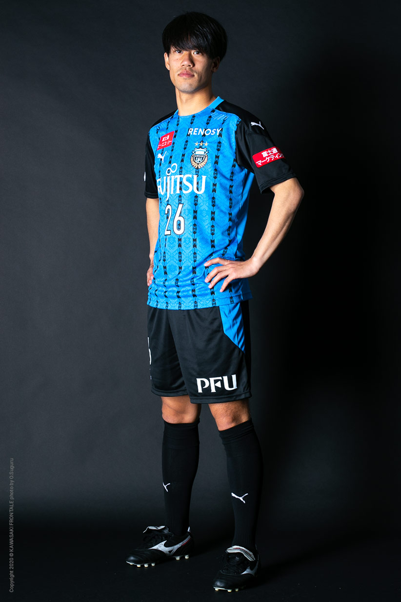 東海学園大学(愛知県)よりフロンターレに加入したルーキー。大学時代は主にセンターバックを務め、守備だけではなく左足のキック正確なフィードを武器にゲームメイクにも加わりチームの攻守をつなぐ。ボランチや左サイドバックでのプレー経験もあり、テクニックは折り紙つき。1日も早くプロとしての力強さを身につけ、公式戦のピッチでプレーする姿を見せてもらいたい。