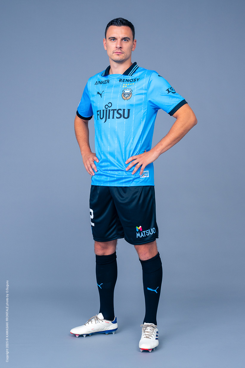 ハイドゥク・スプリト(クロアチア)より完全移籍で加入したセンターバック。元クロアチア代表。屈強なフィジカルと闘志あふれるプレーで対戦相手のエースを封じ込める。代表チームでは右サイドバックでもプレー。クロアチア、スロベニア、ロシア、イングランド、ドイツといったヨーロッパ各国でプレーし、2025年8月にフロンターレに加入。ディフェンスの要としての活躍が期待される。