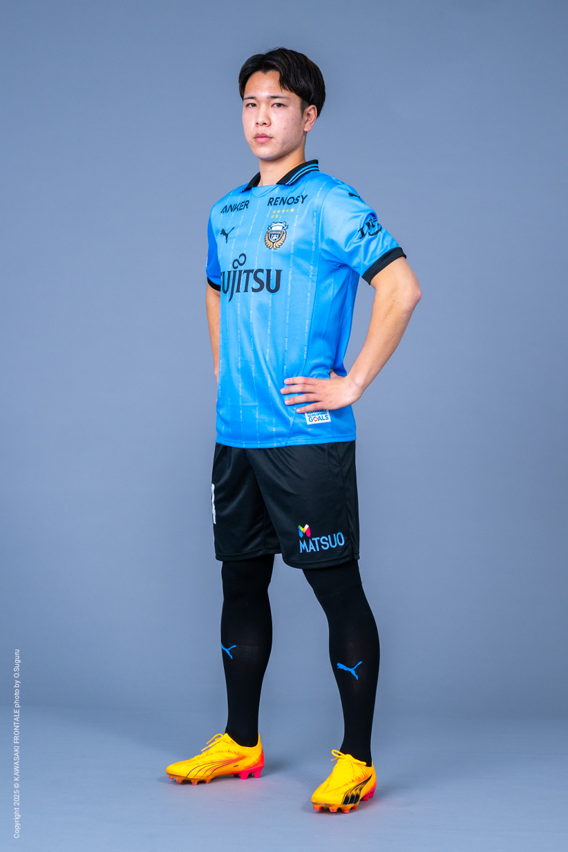 川崎フロンターレアカデミー出身。川崎市出身。巧みなボールコントロールとドリブルテクニック、シュートレンジの広さが武器のアタッカー。フロンターレU-18からプロ入りし期限付き移籍でカターレ富山、V・ファーレン長崎、モンテディオ山形といったクラブで経験を積んだ。昨シーズンはケガで思うようなパフォーマンスを発揮できなかったが、スケールの大きさを失わずに進化してほしい。