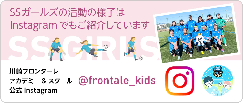 - 川崎フロンターレSSガールズとして選手登録を行いますので、部活動を含め他チーム・他クラブとの二重登録はできません