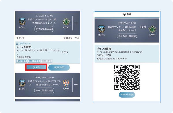 「チケフロ(Jリーグチケット)」 にてQRチケットが表示することができます。